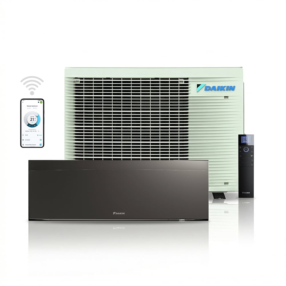 Ontworpen in Europa voor Europa. De gebogen lijnen en bewegend design geven een speciaal gevoel als je hem ziet. Winnaar van verschillende prestigieuze designprijzen. Topkwaliteit en betaalbaar, zo wordt de Emura ook wel omschreven. Het is niet alleen design, want de speciaal ontworpen ventilator zorgt voor hoge prestaties bij lage geluidsniveaus. Hierdoor is de Emura bijna onhoorbaar. Met de ingebouwde krachtige luchtzuiverende filters krijg je betere en schonere lucht in de kamer krijgt. Niet alleen de binnen unit heeft een uniek design ook de afstandsbediening is uitgerust met een minimalistisch ontwerp. Hierop vind je de belangrijkste functionaliteiten, de andere functies zijn terug te vinden in de Intuïtieve Onecta app. De Daikin Emura is momenteel de meest uitgebreide, energiezuinige en complete aircosysteem op de markt.